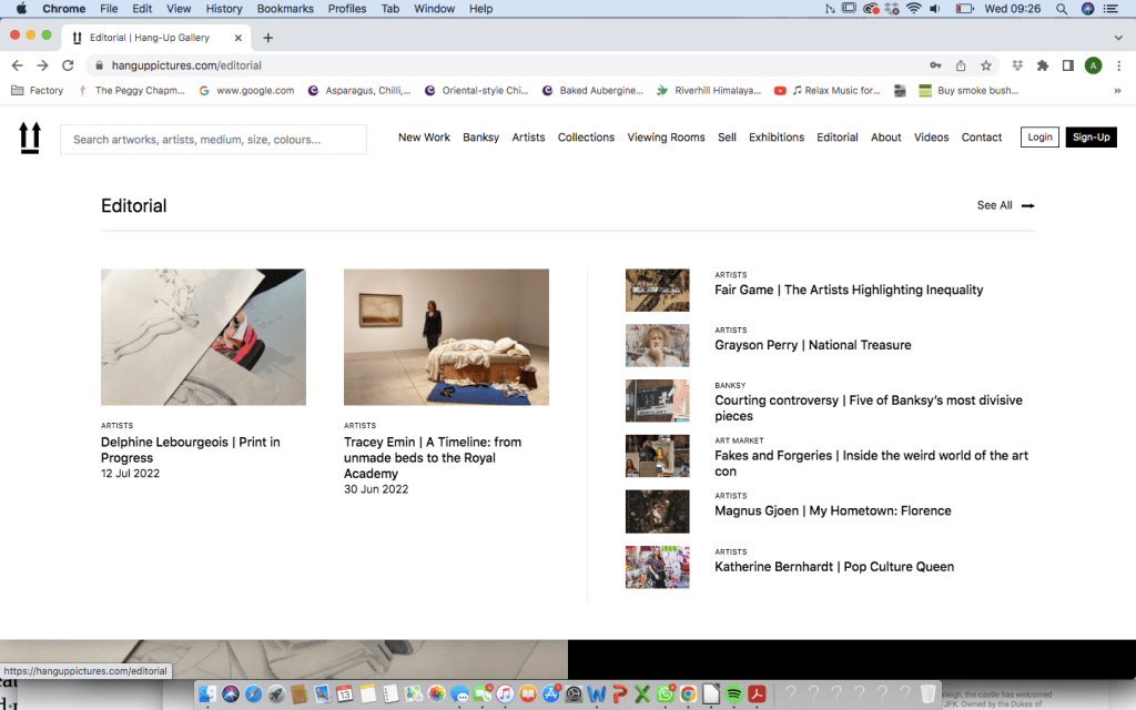 As the writer for Hang Up, a successful commercial gallery in London, I compile editorial designed to convey the brand’s art market knowledge and expertise. Informed by analytics and SEO and designed to be adapted for social channels, the copy is an integral part of the company’s marketing strategy.
