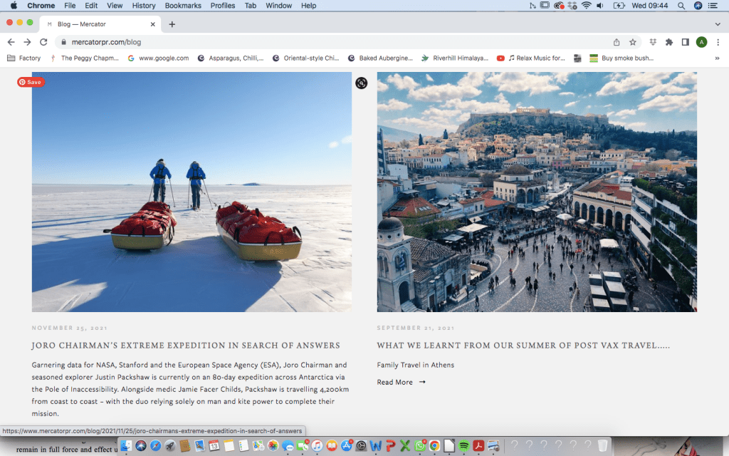 While working on brand strategies and tone of voice for clients of the sustainable luxe travel company Mercator, I also devised web pages designed to convey its own responsible ethos. A diary-style blog features interviews and opinion pieces, and there is a clear, honest sustainability statement (no greenwashing!).